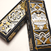 • Custom pressed tuck case printed with premium blue uncoated paper and white and gold hot foil stamping